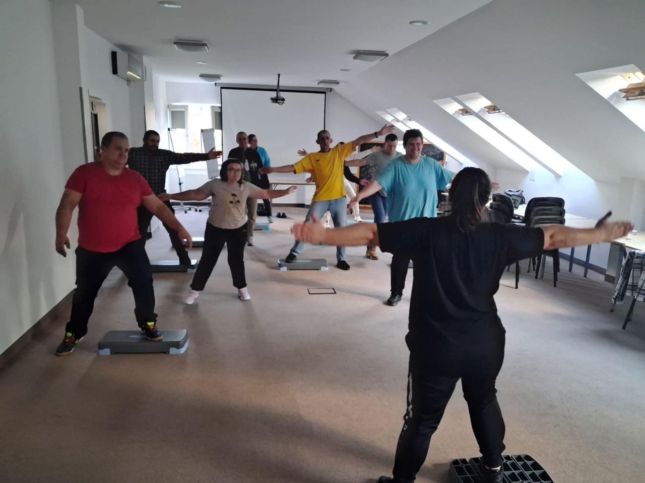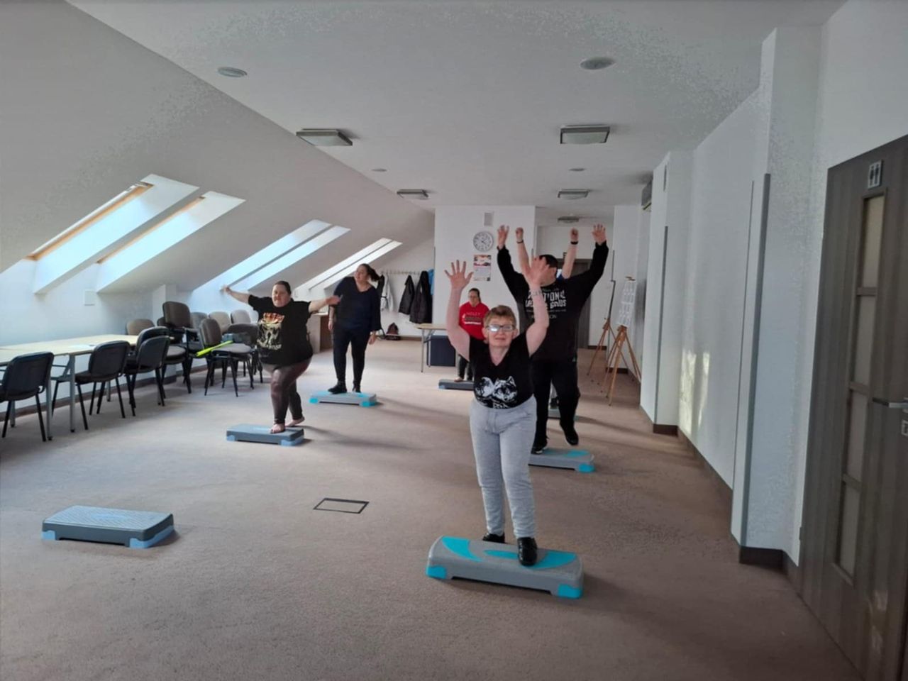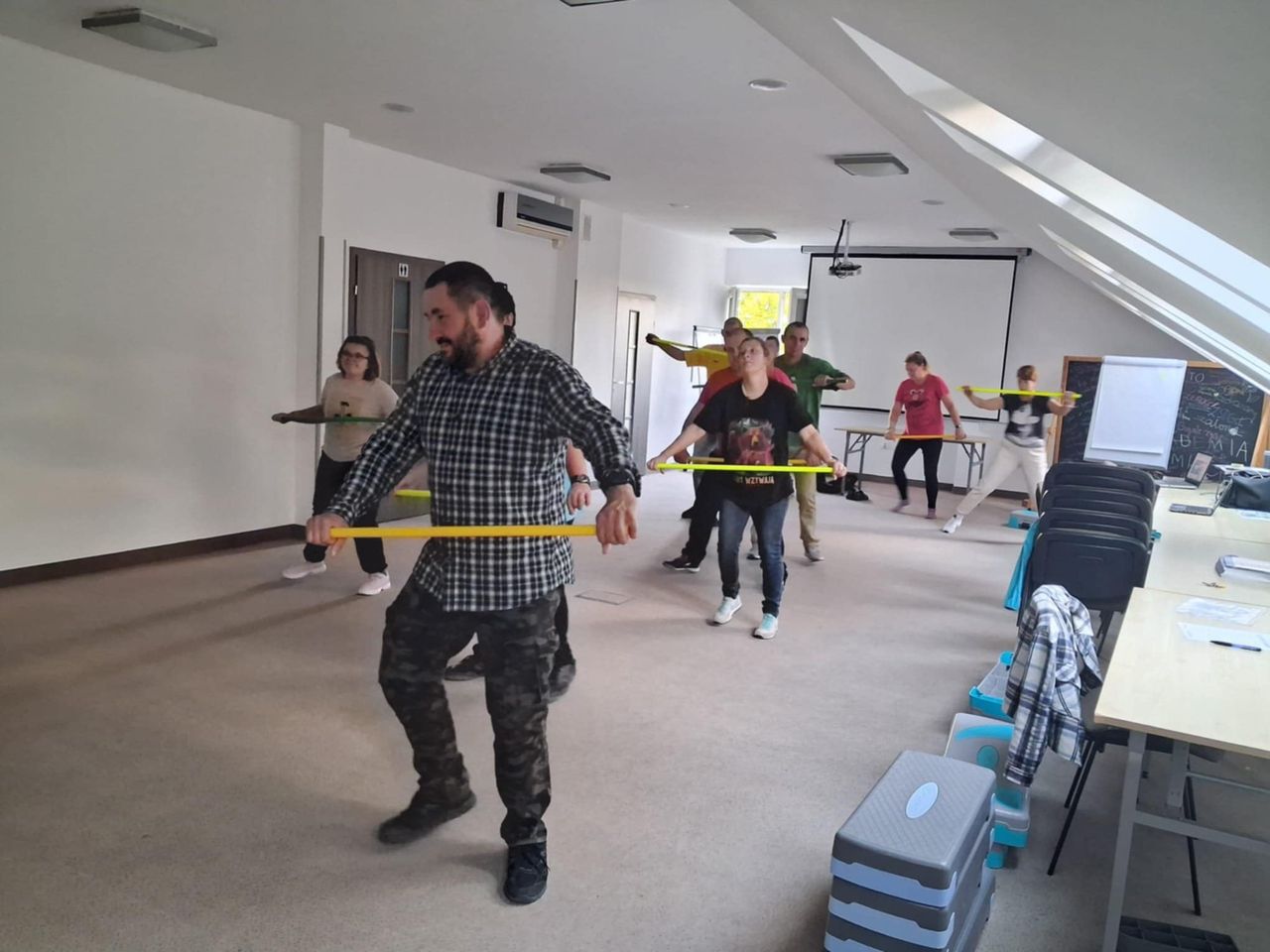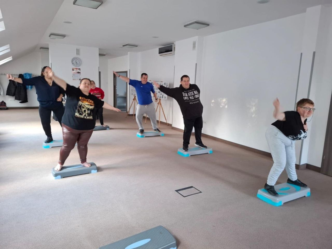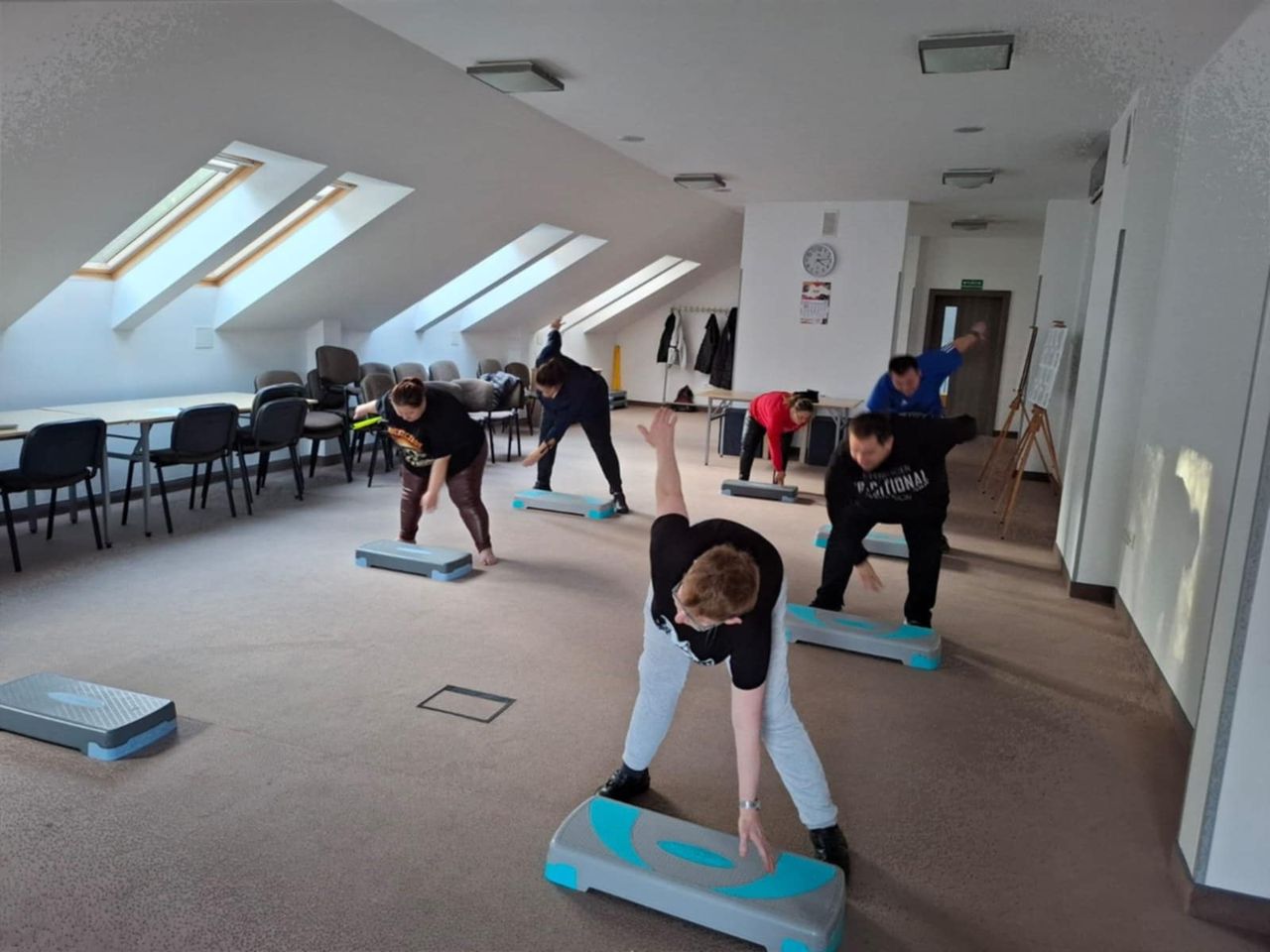 Podczas zajęć uczestnicy mogli spróbować różnych form aktywności fizycznej – ćwiczeń do muzyki na steperze, treningu z wykorzystaniem laski gimnastycznej, a także pełnej pozytywnej energii zumby, która jak zawsze porwała wszystkich do tańca.