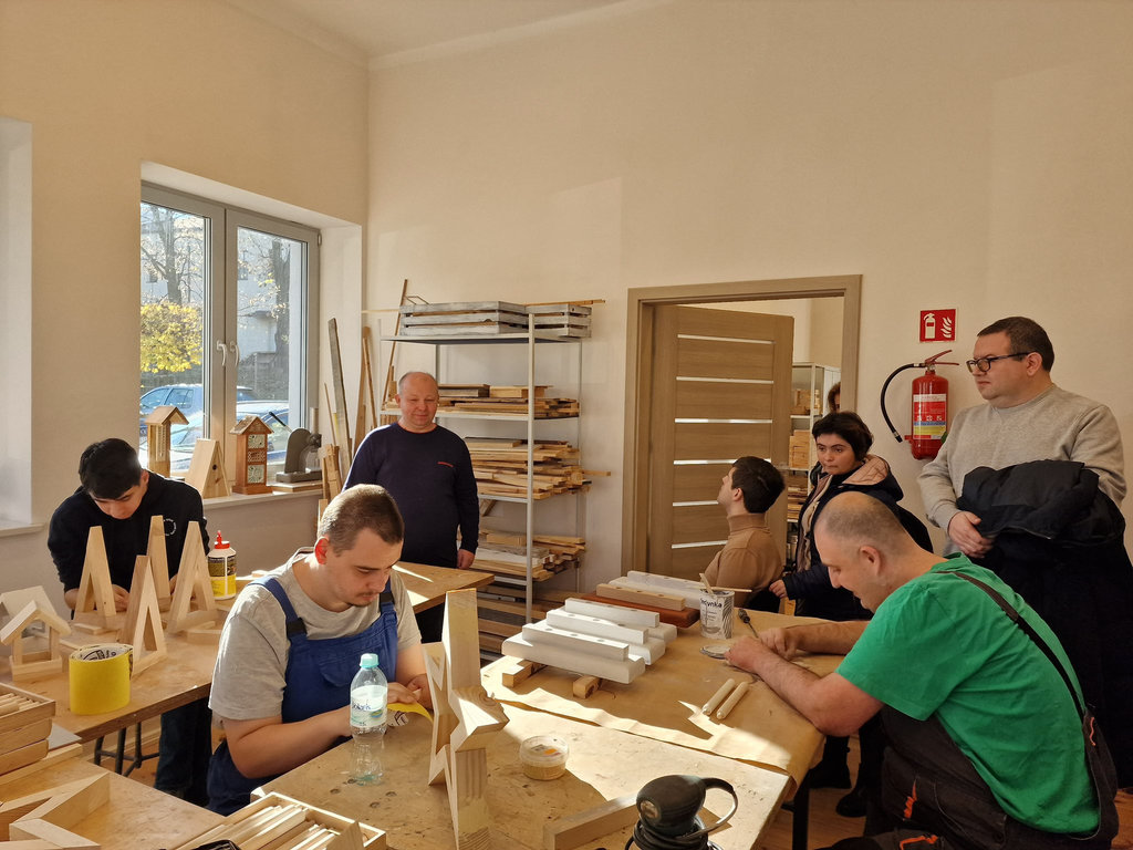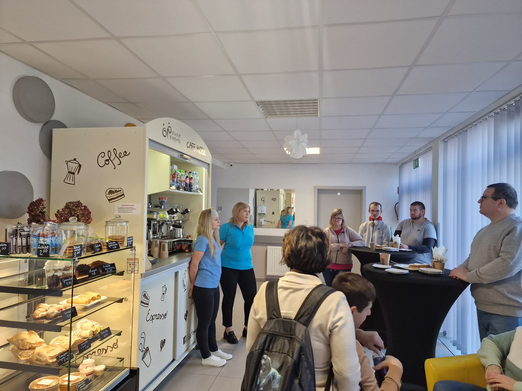 Goście odwiedzili również Warsztat Terapii Zajęciowej, gdzie mogli zapoznać się z jego funkcjonowaniem, dostępnymi pracowniami oraz obserwować codzienną pracę w Zakładzie Aktywności Zawodowej. Całość przebiegała w otwartej i serdecznej atmosferze, sprzyjającej integracji oraz wymianie pomysłów na dalszą współpracę.