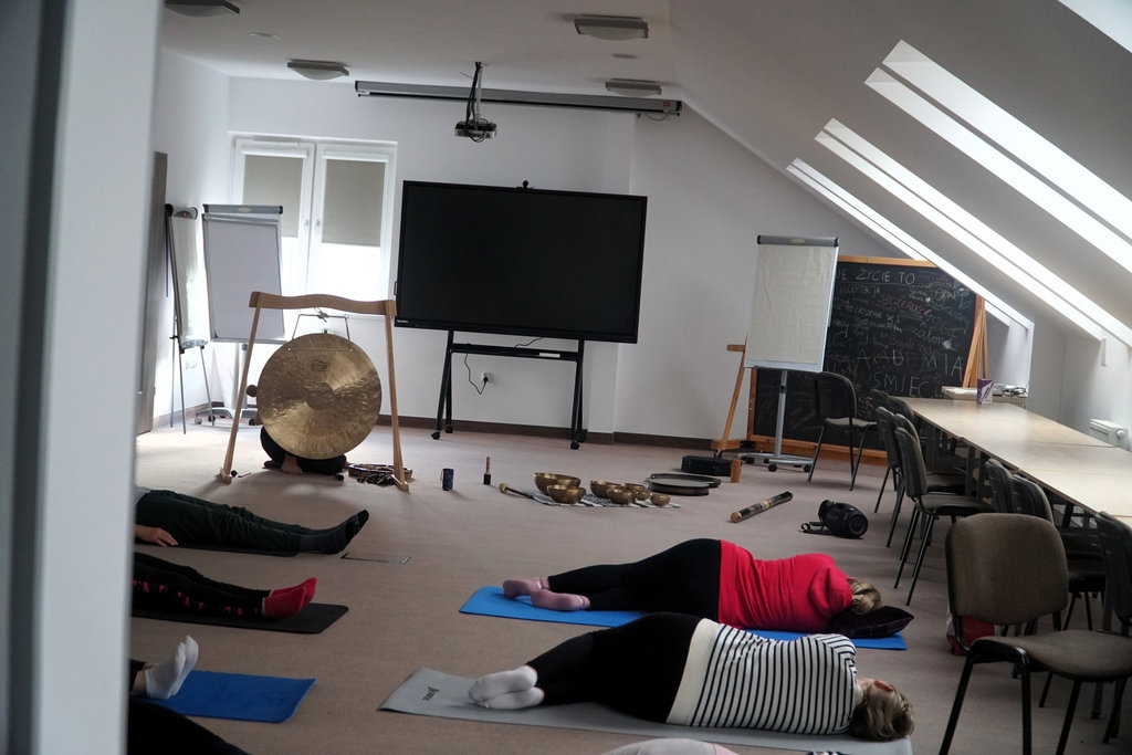 Podczas spotkania uczestnicy praktykowali łagodne sekwencje ruchowe połączone z uważnym oddechem, co pozwoliło im rozluźnić ciało, wyciszyć emocje oraz odzyskać wewnętrzną równowagę. Zajęcia obejmowały zarówno spokojne ćwiczenia rozciągające, jak i elementy relaksacji, pomagając uwolnić napięcia nagromadzone na co dzień.Praktykę zakończyła sesja głębokiego odprężenia, która wprowadziła atmosferę spokoju, lekkości i regeneracji.Uczestnicy zgodnie podkreślają, że takie zajęcia wspierają nie tylko kondycję fizyczną, ale również samopoczucie psychiczne i umiejętność świadomego dbania o siebie.Dziękujemy wszystkim za obecność i zapraszamy na kolejne spotkania z jogą!