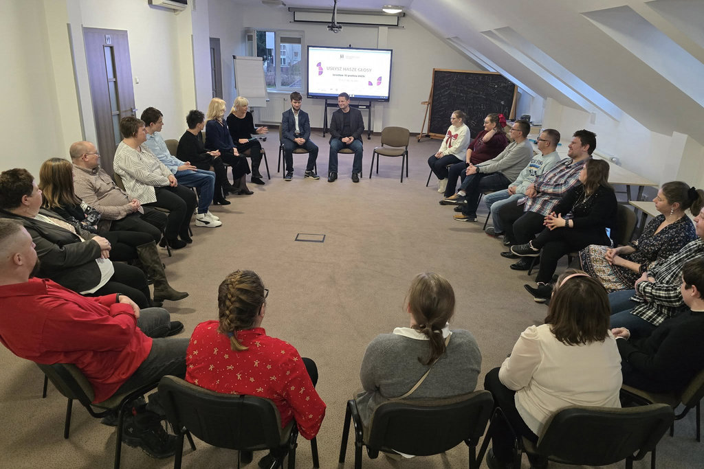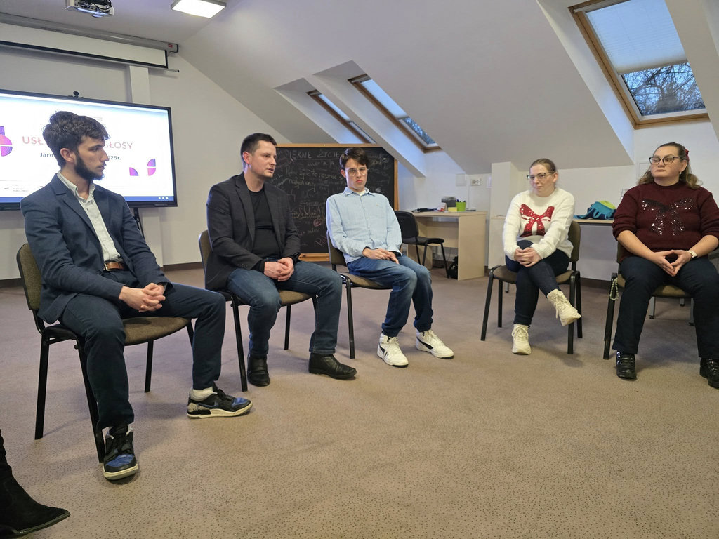 W minionym tygodniu odbyło się ostatnie w tym roku forum dyskusyjne, podczas którego gościliśmy Wiceprzewodniczącego Rady Miasta Jarosławia – Kornela Polita oraz Wiceprzewodniczącego Młodzieżowej Rady Miasta Jarosławia – Alwina Płocicę. Goście opowiedzieli o swojej pracy na rzecz lokalnej społeczności, przedstawili najważniejsze działania ostatnich miesięcy oraz projekty, nad którymi obecnie pracują. Wyjaśnili również, co motywuje ich do angażowania się w inicjatywy służące mieszkańcom naszego miasta.W trakcie spotkania poruszono również tematy związane z dostępnością miejskich instytucji i ulic, sytuacją zawodową osób z niepełnosprawnościami oraz kwestiami mieszkalnictwa. Była to doskonała okazja do rozmowy o wyzwaniach, potrzebach i możliwych rozwiązaniach dla Jarosławia.Serdecznie dziękujemy naszym gościom za poświęcony czas i inspirującą dyskusję.