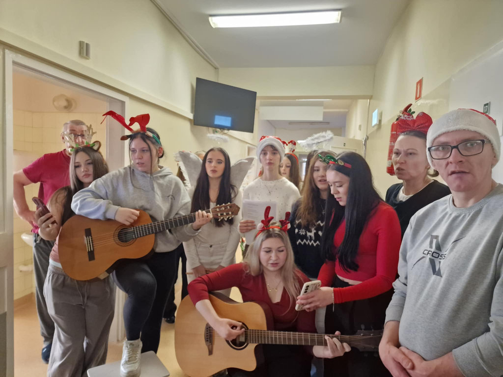 Self-Adwokaci, wraz z wolontariuszami z Zespołu Szkół Spożywczych i Biznesowych w Jarosławiu, odwiedzili pacjentów Zakładu Opiekuńczo-Leczniczego działającego przy jarosławskim szpitalu. Wizyta upłynęła w wyjątkowej, świątecznej atmosferze. Uczestnicy wspólnie śpiewali kolędy, a pacjenci i personel chętnie dołączali do pieśni, tworząc prawdziwą wspólnotę serc. Dodatkowo Self-Adwokaci przekazali własnoręcznie wykonane kartki świąteczne, które spotkały się z dużym entuzjazmem.To wydarzenie pokazało, jak niewiele potrzeba, by sprawić komuś radość – obecność, serdeczne słowo i odrobina czasu mają ogromną wartość. Kolędy, swoją mocą łączenia ludzi, niosą nadzieję i wprowadzają ciepło, które zostaje z nami na długo.Self-Adwokaci dziękują wszystkim za otwartość, życzliwość i wspólnie spędzony czas, który przypomina, że prawdziwe świąteczne wartości tworzymy razem.