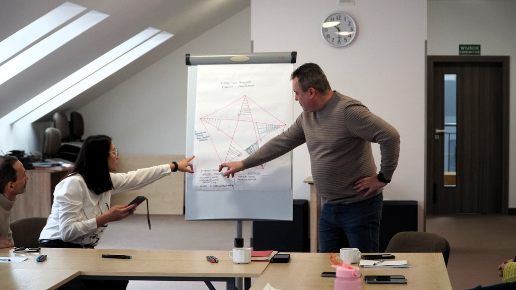 Dziś odbyły się warsztaty dla kierowników placówek Zakładu Aktywności Zawodowej, stanowiące przestrzeń do refleksji oraz pogłębionej analizy funkcjonowania zespołów i placówek .Celem spotkania była rzetelna diagnoza kluczowych obszarów działalności, identyfikacja wyzwań oraz wyznaczenie priorytetowych kierunków dalszego rozwoju. Praca prowadzona była m.in. w oparciu o metodę pentagramu Gingera, łącząc indywidualną autorefleksję z pracą zespołową. Uczestnicy mieli możliwość wymiany doświadczeń, analizy dobrych praktyk oraz wypracowania konkretnych rekomendacji usprawniających funkcjonowanie placówek.Warsztaty stanowiły istotny element procesu doskonalenia zarządzania oraz wzmacniania jakości pracy. Spotkanie potwierdziło, że kluczowym zasobem organizacji są ludzie – ich kompetencje, odpowiedzialność, zaangażowanie oraz umiejętność współpracy. Dziękujemy wszystkim uczestnikom za aktywny udział i wkład w budowanie wysokich standardów działania.